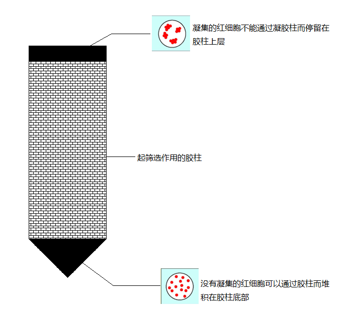 微柱凝膠技術(shù)是液相技術(shù)與固相技術(shù)的巧妙組合,是凝膠過(guò)濾技術(shù)、離心技術(shù)、紅細(xì)胞凝集試驗(yàn)技術(shù)(特異性抗體抗原反應(yīng))的完美結(jié)合。通過(guò)對(duì)凝膠種類(lèi)的選擇和凝 膠濃度的調(diào)節(jié)來(lái)控制分子篩孔徑大小,使分子篩只允許游離紅細(xì)胞通過(guò),從而達(dá)到分辯凝集紅細(xì)胞和非凝集紅細(xì)胞的目的。